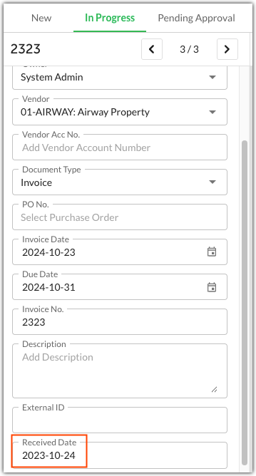 Use the Received Date filter in the All tab of the Invoices module to view all invoices that were received during a certain timeframe.