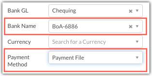 Once onboarded, you can select Payment File as a payment method when creating payments in Quadient AP. Please ensure to select the matching Bank Name when coding the payment. Each Bank Name for the Payment File payment method follows the naming convention: