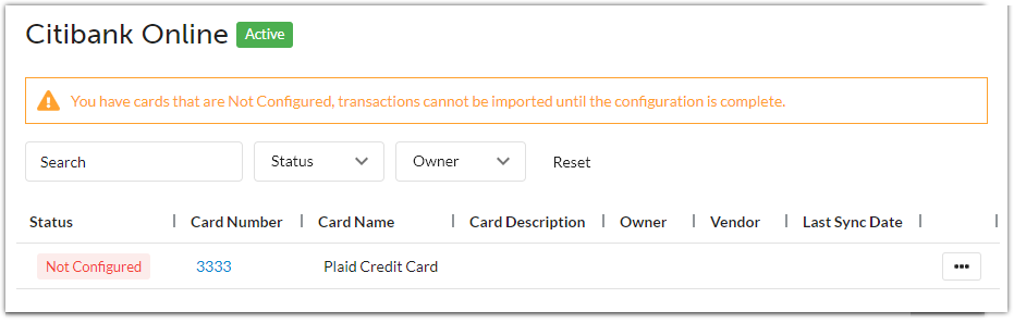 Once the card is configured, Plaid will sync with Quadient AP throughout the day to import new transactions or deactivate closed cards.